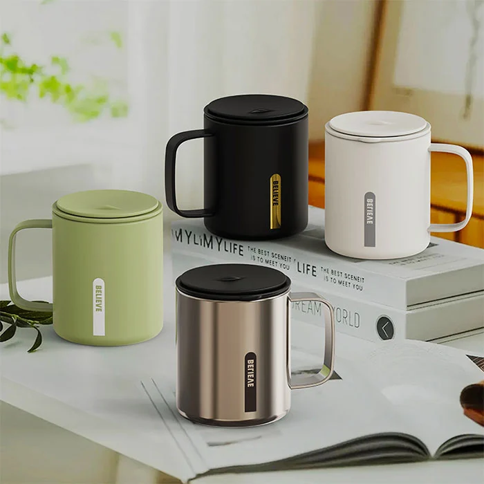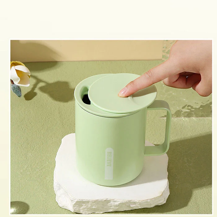 ນັ່ງຢູ່ໃນຫ້ອງການສໍາລັບການຂະຫຍາຍເວລາໃນຂະນະທີ່ນ້ໍາດື່ມ, ຫນຶ່ງຄລິກເປີດຝາບໍ່ລົບກວນການເຮັດວຽກ, ສະຫນອງ insulation ແລະຄວາມເຢັນ, ເຫມາະສໍາລັບກາເຟແລະຊາ;