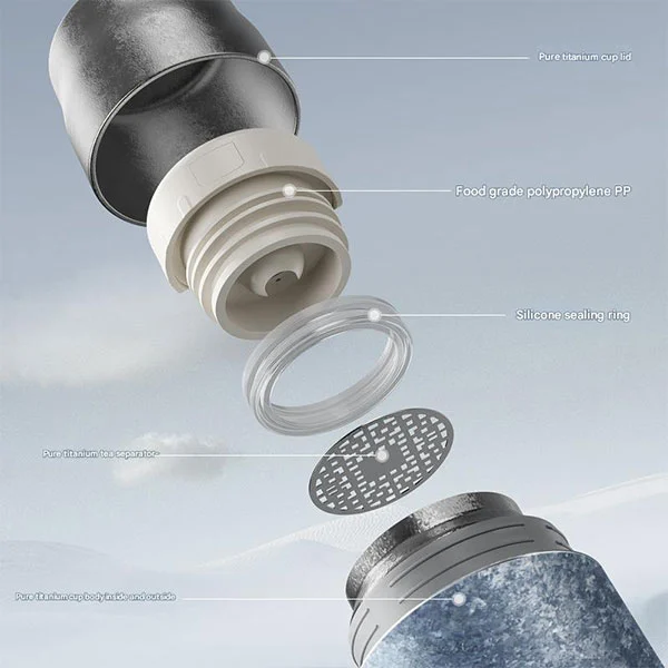 ຕຸກນໍ້າຊາແບບຄລາສສິກ, ຕຸກ Titanium ມີຈອກປ້ອງກັນການຮົ່ວໄຫຼທີ່ເຮັດຈາກ titanium ບໍລິສຸດທັງພາຍໃນແລະພາຍນອກ, ມີຝາປິດປ້ອງກັນການຮົ່ວ, ຝາຈອກ Titanium ບໍລິສຸດ, ແລະສອງຊັ້ນປ້ອງກັນການເຜົາໄຫມ້!