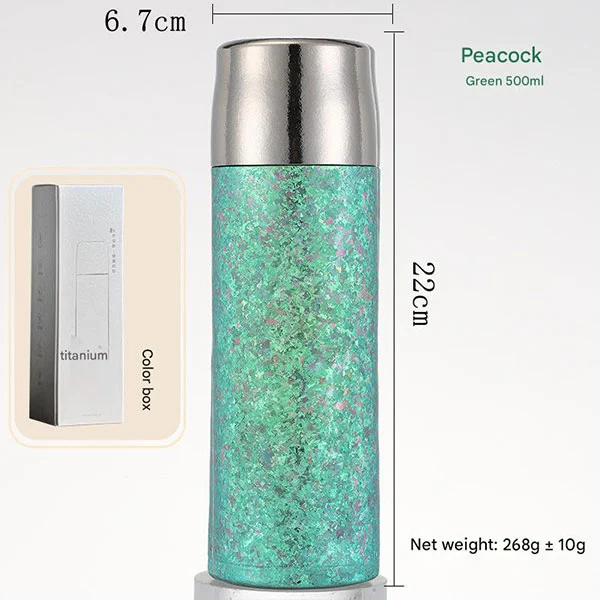 ຕຸກນ້ຳ Titanium ນຳໃຊ້ການອອກແບບສນວນສູນຍາກາດສອງຊັ້ນ. ກະຕຸກນ້ໍາໂລຫະຂອງພວກເຮົາໄດ້ຮັບການພິສູດແລ້ວວ່າສະຫນອງ insulation ທີ່ດີທີ່ສຸດສໍາລັບເຄື່ອງດື່ມຂອງທ່ານ, ບໍ່ວ່າຈະເປັນໂຄລາເຢັນຫຼືກາເຟຮ້ອນ. ເຄື່ອງດື່ມຮ້ອນສາມາດເກັບຮັກສາໄວ້ໄດ້ເຖິງ 8 ຊົ່ວໂມງ, ໃນຂະນະທີ່ເຄື່ອງດື່ມເຢັນສາມາດເກັບຮັກສາໄວ້ໄດ້ເຖິງ 12 ຊົ່ວໂມງ. (ຂໍ້ມູນການທົດລອງ: insulation: ຕື່ມນ້ໍາໃນອຸນຫະພູມຫ້ອງຂອງ 99 ° C, ແລະອຸນຫະພູມຈະເກີນ 60 ° C ຫຼັງຈາກ 6 ຊົ່ວໂມງ insulation; ຕູ້ເຢັນ: ຕື່ມນ້ໍາໃນອຸນຫະພູມຫ້ອງຂອງ 0 ° C, ແລະອຸນຫະພູມຈະຕ່ໍາກວ່າ 5 ° C ຫຼັງຈາກ 6 ຊົ່ວໂມງ insulation.)